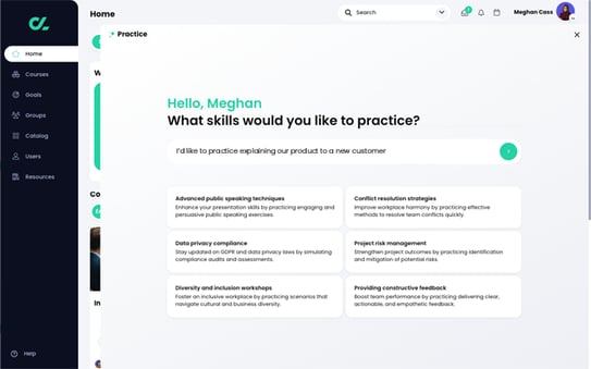 - Practice a new skill through interactive conversational role-play.