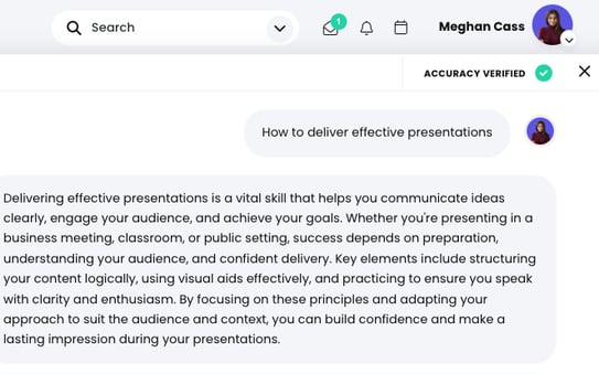AI Crosscheck helps to ensure accuracy, so learners can confidently act on what they learn and organization guardrails are applied to keep the content on point.